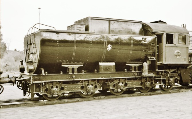 Die F1207 in den 1920er Jahren vor einem Reisezug. Copyright: Stig Nyberg / Slg. Jänvägsmuseet Gävle