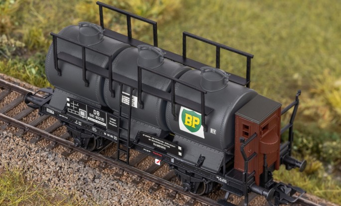 Der neue Kesselwagen der Einheitsbauart aus 2025 bekommt einen neuen Aufbau mit drei einzelnen Behältern. Diese Version bringt deutliche Abwechslung in das Märklin-Kesselwagensortiment.
