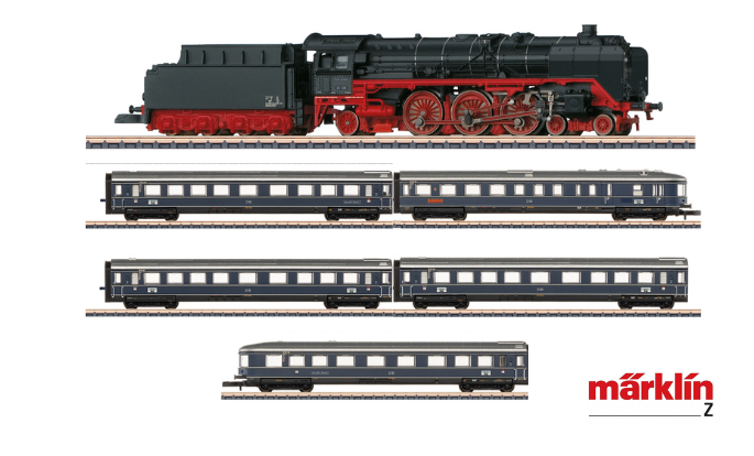 Das Spur-Z-Modell wird von einer Baureihe 01 der DB mit den großen Wagner-Windleitblechen bespannt. Die Lok besitzt weiße Spitzenbeleuchtung und der Schlusswagen rote Schlusslichter.