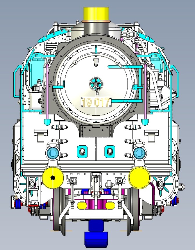 Bild oben: Das imposante Fahrwerk der 1´D 1´ Lokomotive.